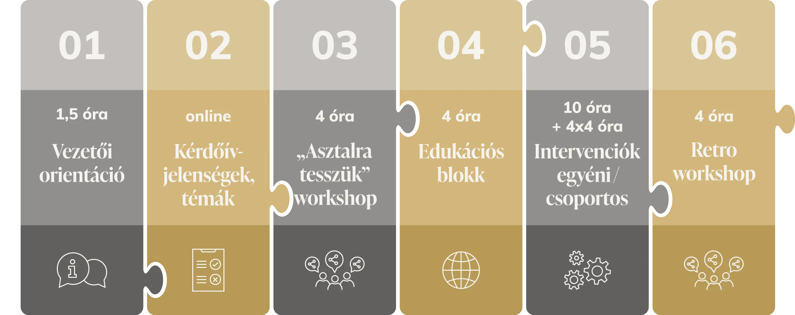 Szervezeti pszichoedukációval támogatjuk a változást, és mozgósítjuk a háromlépcsős folyamatot: